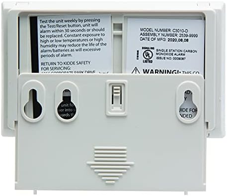 The Kidde Carbon Monoxide Detector with 10-Year Battery & Digital Display, model C3010D, is a carbon monoxide detector that uses electrochemical sensor technology to detect carbon monoxide. The CO detector is powered by a 10-year lithium battery that never needs replacing, plus protects during a power failure. The Kidde alarm is conveniently designed and portable enough for travel - simply install it on a wall or place it on a tabletop. When carbon monoxide is detected, an 85-decibel alarm will sound & a red LED will flash. A green LED indicates that the alarm is receiving power. And an amber LED indicates when it's time to replace the detector. The test-hush button allows you to test the battery operations as well as temporarily silence the low battery chirp warning. Plus, peak level memory records the last time carbon monoxide was detected or when the unit was last tested. Install a smoke detector & carbon monoxide detector on every level of your home and near bedrooms to help keep your family safe from fire & poisonous gas. UL Certified with a 10-year limited manufacturer's warranty.