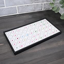 - 50 White Gemstone Display Tray with Insert For Jewelry ShowcasesTry this organizer to hold your growing collection. The tray comes with a foam insert and 50 clear jars for holding all your precious and small accessories nice and snug in place with no worries of scratching or cracking. Also perfect for displaying your merchandise in the stores or at the business shows. The open-top design of the tray and the clear jars allow your collection in easy view so you can see what you have. FEATURES - Each package contains a display tray with an open-top design, a black removable foam insert, and 50 clear plastic round jars.- The tray is stackable and each jar has a lid for holding your charms, small cabochons, loose stones, beads or coins, and keeping them organized in place.- This is perfect for you to store your precious gems in the workspace or more. You’ll feel that you got exactly what you expected! The foam inside holds the jars nice and tight.SizeOverall dimension for Tray: 14 3/4"W x 8 1/4"D x 1"H; Each jar: 1" Dia.