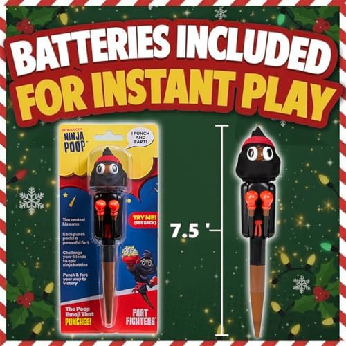 Farting Poop Pen with Punching Arms - Funny Stocking Stuffers for Teens, Boys & Kids of All Ages - Great for Silly Secret Santa or Holiday White Elephant Gifts - Christmas Gag Gifts for Teens (Ninja)