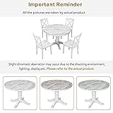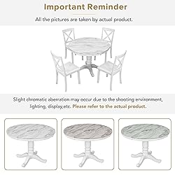 CLASSIC DESIGN - Single pedestal round table with four curved backrest dining chairs. This dining set would add charm and attractiveness to your kitchen. SOLID STRUCTURE - This round table and chairs dining set is constructed by solid rubber wood, which offers great stability and durability for long-term use. PERFECT FOR YOU - Includes one table and four dining chairs. It is super user-friendly for you to freely place the table and chair at any place you need. EASY TO CLEAN & ASSEMBLE - Table: 41.7” L x 41.7” W x 29.9” H. Chair: 18.8” L x 20.8” W x 39.3” H.The top of the table is polished with resin, which makes the surface glossy and easy to clean. Simple assembly required. Buy with Confidence:100% Customer Satisfaction; Please feel free to contact us if there is a missing or damaged part during the process of shipping, Professional customer service team will provide 24/7 friendly support.