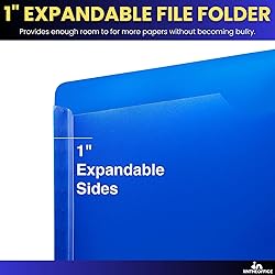 Poly file jackets are made of durable poly material, feature a 1-inch expanding bottom to store more papers, and can hold up to 20 packs of assorted files. Folder is sized to fit standard letter-size documents, allowing you to easily store and organize all of your important papers in one place. Expanding file folder features a reinforced gusset that resists tearing, and it also has a secure tab closure to keep your documents safe and secure. Plastic file jackets come in an assortment of colors, so you can easily find the one that you need, and it can also be labeled with a label maker for better organization. File jackets can be easily stored in a desk drawer or filing cabinet, making it easy to access your documents whenever you need them.