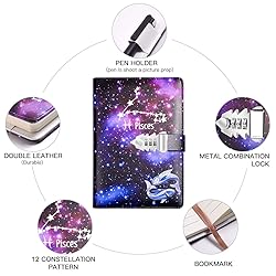 ARRLSDB A5 Creative Password Lock Journal PU Leather Combination Lock Diary Locking Diary Notepad (Pisces)