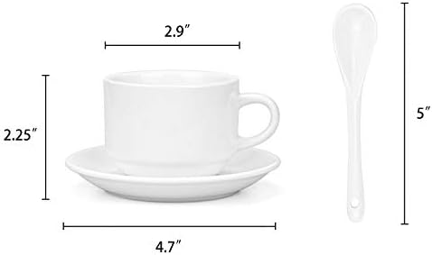 - Perfect Size for Espresso Lovers - Each espresso cup measures at 2.9" in diameter and 2.25" in height, saucer plates measure at 4.7" in diameter, 5" porcelain espresso spoons. These demitasse cups are the correct size, hold the temperature of the coffee.