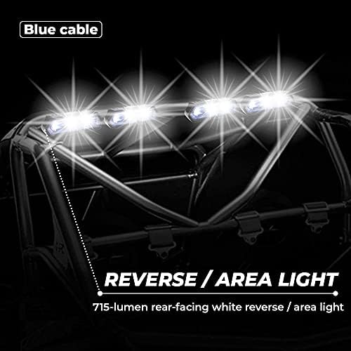 - 2 colores de halo y 5 modos de luz estroboscópica: la luz trasera LED UTV Chase puede cambiar a 2 colores de halo, rojo y blanco. Y con 5 modos de funcionamiento: luz estroboscópica, de cortesía, marcha atrás, marcha y freno. Al frenar, la luz se ilumina automáticamente en rojo. Si el estado es de conducción, la luz baja en rojo. La luz es blanca al dar marcha atrás.