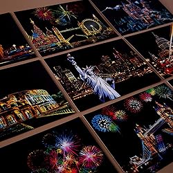 [PACKAGE INCLUDING]: 16 x Scratch Drawing Board, 1 x Black Scratch Pen, 1 x White Pen, 1 x Clean Brush, 1 x Repair Fluid, 4 x Wood Stylus Stick - 7.9 x 5.5 inch (Envelope size) [SCRATCH ART RAINBOW]: Each Scratch Cards features a foil layer of sketches, Use scratch pen (included) to scratch off gray colored sketches, Revealing a beautiful colors underneath, and use a small brush to clean the scraped black powder in time. [SCRATCH ART THERAPY]: You're more likely to work well if you take a short break for mindless work everyday. This scratch off painting is exactly what you are looking for, easy, time-wasting and stress-free. [PERFECT GIFT FOR KIDS 'SKETCHES (AND ADULTS)]: Complete engraving art set for any age artist. The size is excellent for kids and can be easily carried around say for a car trip or your next trip to the grocery store. [HOME DECORATION & CREATIVE GIFTS]: You can make your own unique postcard or frame as an ornament. You can write down what you want to express on the back. A unique and surprise gift for the people you care. Or When you arrive in a city , send a hand-painted postcard to your friends, which is a special memory for you and your friends.