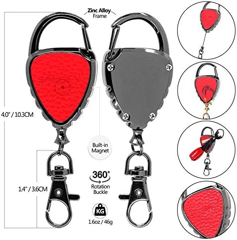 - CARABINER RETRACTOR: Zinc alloy frame, covered with PU leather, bulit-in magnet for tools holding. 600mm / 24" nylon cord, 1.5-Ounce retraction force