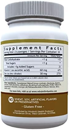 Windmill Health Natural Vitamins Zinc Lozenges with Vitamin C Honey Lemon Flavor, Immune System Support, Provides Antioxidant Support, Delicious & Fast Acting, 60 Lozenges, 30 Servings.