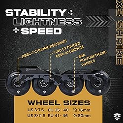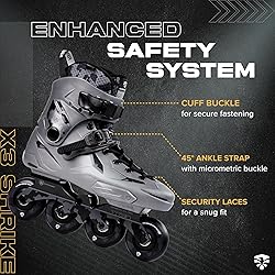 HIGH-IMPACT HARD-BOOT SHELL WITH RIVETED CUFF: Built for durability, the Flying Eagle X3 Shrike inline skates feature a hard-boot shell and riveted cuff for excellent ankle support and foot stability. These adult inline skates offer a secure fit for both beginners and experienced skaters. Whether you're exploring city streets in roller skates for adults or enjoying long rides in skating shoes, this design is made for both men and women who want confidence and control. BUILT-IN HEEL SHOCK ABSORBER: With Flying Eagle inline skates, comfort meets performance. The built-in heel shock absorber reduces pressure from hard impacts, allowing smoother rides on rough paths. Designed for adult skates and ideal for skating shoes, this feature adds extra cushioning for longer sessions. Ideal for both inline skates men and inline skates women, these adult roller skates help keep you going in total comfort. REPLACEABLE ULTRA-CUSHIONED BREATHABLE LINER: Stay fresh and supported with the ultra-cushioned liner in Flying Eagle skates for women and men. This breathable liner is removable and washable, ensuring a clean fit with every ride. Whether you wear inline skates women prefer or roller skates men rely on for daily use, the comfort and airflow are ideal for all-day skating. It’s a thoughtful touch for anyone looking for reliable adult inline skates built for performance. EGO LITE ALUMINUM FRAMES WITH ROCKERABLE AXLES: The Flying Eagle X3 Shrike is equipped with lightweight CNC-machined aluminum frames designed for strength, balance, and responsiveness. The rockering axles allow for smoother edge control and tighter turning, making these inline skates ideal for quick maneuvers. Built for skates for men and women who skate in urban settings, these adult roller skates men and women deliver reliable support and agile performance. HIGH-REBOUND POLYURETHANE WHEELS AND ABEC-7 BEARINGS: Experience a fast, smooth glide with high-rebound 85A wheels and ABEC-7 bearings on Flying Eagle inline skates. Whether you're into speed or casual skating, these components deliver power and performance. Suitable as inline speed skates or everyday adult skates, they offer stability and control. A perfect match for those choosing roller skates women and men love for outdoor fun and city rides.
