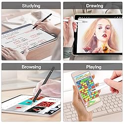 This dual-tip stylus has a 0.24-inch fiber tip and a 0.27-inch clear disc tip, with a lightweight aluminum body for a comfortable grip. 6.18" Long, 0.52 Oz High-precision transparentdisc tip, clear and thin, offers the best visual reference when marking, ensuring accurate and lag-free operation Magnetic cap design: The two caps magnetically attach to both ends of the stylus, optimally protecting both tips from damage and loss Compatible with All Touch Screen Devices such as iPad, iPhone, Smartphones, Tablet and Laptops Friendly Reminder: The stylus pen is designed to replace fingers. No battery, no Bluetooth connection, ready to use. When using certain apps on the iPad, please disconnect the active pencil or adjust the settings within the app. For more details, please refer to the APP Setup Guide. Please search ASIN:B08L34JX24 or B08L355KQV for StylusHome replacement tips 2 Years Limited Warranty. 24/7 customer support, free returns with no questions