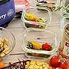 - Made from high borosilicate glass with plastic lids. The glass containers are dishwasher, microwave-safe, and can go directly from the oven to the freezer safely. Lids are top-rack dishwasher-safe