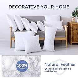 SIZE - 12" x 24" square lumbar pillow insert, for use of all types of shams & covers. Premium Material - With 95% duck down feather filling, 100% cotton fabric cover, For exceptional softness and breath-ability, and comfort. Cushion Insert Function - With downproof stitching to avoid feathers from poking out and full pillow from corner to corner. Occasions - This Throw Pillow stuffing can be used for sofa pillows, chair pillows, bed pillows and any elegant pillow case to fill and decorate your room or office. Washing Instructions - Machine wash in the gentle cycle with cold water and sun dry or tumble dry on low. Note: For best results this insert is recommended for 16" x 16" sham covers, provide a plump and full pillow from corner to corner.