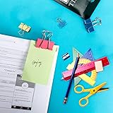 - Package Content: 1.4 inches 6 pcs. 1 inch 6 pcs. 0.82 inches 10 pcs. 0.75 inches 18 pcs. 0.5 inches 60 pcs. a total of 100 pcs. High-Quality: Clips made of sturdy tempered steel, Clips can be reused with the ability to bend back into shape after each use. and provide superior fixing power. Good helper: binders can help you organize cluttered desks and messy clothes and debris in your home. Compare with the traditional binder clip, the colourful colour binder clips make you feel Elegant and fun. Application: very suitable for use in offices, schools, homes, workplace. Our Team: Mearun Salor, a young brand, a young team, We are committed to finding more beautiful and cheaper products for offices and families. Our Company's Service Concept: provide the best service and better product quality.