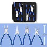 【With Dip-coated Handles + Internal Reset Spring】: Easy to operate, easy to use, ergonomic design, this product can provide you with long-term service 【 4-pc. Sprengring Pliers Set】: 2 straight and 2 curved pliers, Length: approx. 175mm 【Comes With A Black Bag, Easy To Store And Carry】: Snap ring plier set comes with a collapsible pouch packaging, easy to store, reduce the risk of loss, keep a good collection and storage for the next use of this product 【High-quality Materials】: This snap ring plier set is made of high-quality metal materials, after special heat treatment, it has high strength and durability 【Application】: These snap ring pliers are for installing and removing the snap spring, vehicle manufacturing and machinery industry for the fixed bearing or hole bearing