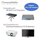 [3D GLASSES FEATURES] The dlp link 3d glasses adopts the latest active shutter technology, super fast 144Hz refresh rate, ahead of other 120Hz or 96Hz product's level. And it also a rechargeable design 3d glasses, with ON/OFF switch. Not throwaway 3d glasses. High definition, no ghosting images, no flickering, providing you a superior 3D visual experience! [ACTIVE 3D GLASSES] Our 3d glasses has 2D to 3D function. If you have turn on and pair our Active 3D Glasses and don't see the effect of 3D, just need to clicking the volume up and down switch on the remote control panel and then press the switch in the middle of the glasses to flip the left and right eye views, in order to obtain a better 3D experience. [DLP 3D GLASSES] Simple One Button Operation with Auto 5 seconds Stand by and 5 minutes Shut Off, detailed user manual included. It is very convenient, no need to operate the dlp projector, Works without transmitter. Any DLP projector can be used anytime, anywhere [LIGHT AND COMFORTABLE] Active 3d glasses are lightweight and portable, and can also be worn very comfortably in front of regular glasses for long-term wearing comfort, 3d glasses come with a cleaning cloth, a cloth bag for storage, a zippered glasses case and booklet . [WIDE AND QUICK COMPATIBILITY] The Active Shutter 3D Glasses use "DLP Link" as their sync method can quickly works with all DLP Link technology projectors (Note: It only supports all DLP core technology projectors)