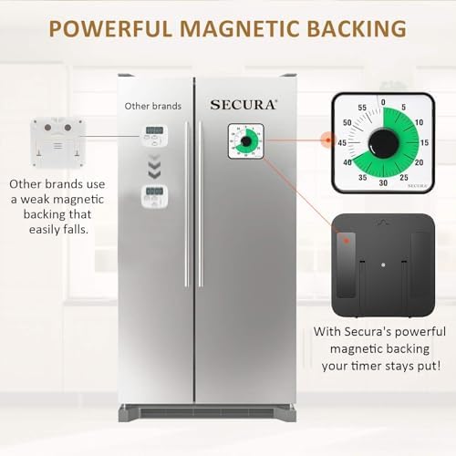 Secura 60-Minute Visual Countdown Timer, 7.5-Inch Oversize Classroom Visual Timer for Kids and Adults, Durable Mechanical Kitchen Timer Clock with Magnetic Backing (Green)