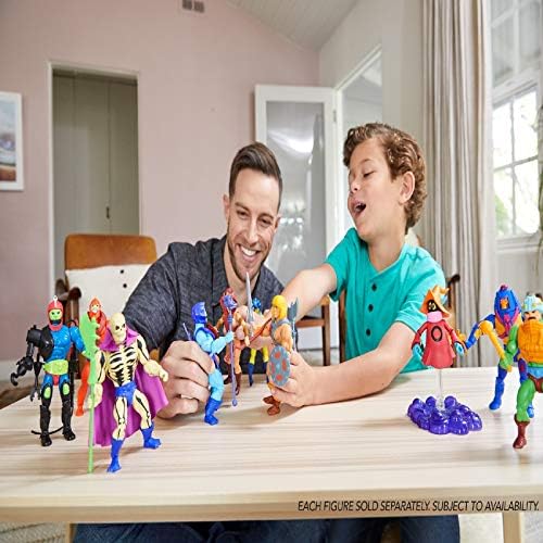 ¡Es un momento emocionante para ser fan de Masters of the Universe! Para los fanáticos de toda la vida y para una nueva generación de niños que aman la acción y la aventura, es hora de experimentar la emocionante acción y las aventuras de He-Man, Skeletor, los secretos de Castle Grayskull y mucho más. Las figuras de esta colección miden 5.5 pulgadas de alto y tienen 16 articulaciones móviles, por lo que son muy articuladas para una diversión imaginativa y orientada a la acción, ¡al estilo Masters of the Universe! Los fans veteranos apreciarán tanto los detalles de diseño vintage que honran la herencia de esta querida franquicia de aventuras como las actualizaciones de diseño que añaden un aspecto emocionante al futuro. Cada figura viene con un accesorio de batalla y un mini cómic de una serie que explora nuevas historias y presenta a héroes, villanos y aliados en la eterna batalla entre el bien y el mal. A los aficionados les encantará el envase retro de estilo clásico. Mantente atento a los nuevos personajes que vienen y selecciona una colección para jugar e intercambiar. Cada figura se vende por separado, sujeta a disponibilidad. Los colores y las decoraciones pueden variar.