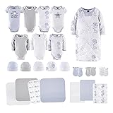 El Set de Ropa de Cama para Bebés Peanutshell - Set de Regalo de 23 Piezas para Niños o Niñas, Ropa y Accesorios Esenciales para Recién Nacidos - Ropa 0-3 Meses - Azul y Gris