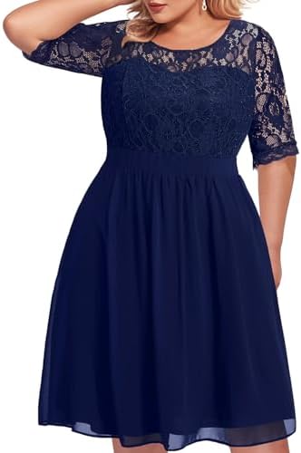 Pinup Fashion Plus Size Navy Dress Funeral Blue Wedding Guest Lace Chiffon Short Formal Cocktail Party Midi Dress Women