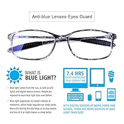 - FEATURES100% brand new and high qualityComputer readers, anti blue light, protect you eyesPremium elastomer materials, flexible and durableLightweight, comfortable fitRubber Support, not easy to fallFashion reading glasses makes you fascinating SPECIFICATIONItem: Blue Light Blocking Reading GlassesGender: UnisexColor: Blue, Tortoise, Green, Dark GrayFrames Materials: Elastomer material TRLens Materials: ResinDiopter available: +1.0/+1.5/+2.0/+2.5/+3.0/+3.5Frame Width: 134mm/5.27"Lens Width: 52mm/2.04"Lens Height: 34mm/1.33"Bridge Width: 17mm/0.67"Temple Length: 137mm/5.39" PACKAGE4 x Reading glasses4 x Leather case4 x Soft Cleaning Cloth1 x Glasses Holder strap1 x Box TIPSTo avoid damage, please don't clean your eyeglasses with paper towels or clothing or alcohol, and also avoid using household detergents or soaps. While a few mild soaps don't harm lenses, today's extra strength soaps are powerful enough to slowly disintegrate lens coatings. ABOUT USDOOViC was born to give people glasses they can actually afford but still make them look great.