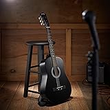Perfect beginner guitar: Specially designed for students and teens who are just getting started. This 38-inch, right-handed, acoustic guitar features all the bells and whistles. Designed with 18 smooth frets, 6 steel strings, and easy to hold neck. Complete starter kit: Entry-level guitar bundle includes 38-inch acoustic guitar, nylon bag, 3 picks (of assorted colors), shoulder strap, digital tuner, pitch pipe, an extra set of 6 strings, and an instructional sheet. Superior-grade tonewoods: Top, back, and sides are crafted from laminated basswood for versatility and warmth, with a high-gloss finish. Whether playing soft or loud, strumming or flatpicking, this guitar remains responsive and retains its tonal integrity. This guitar is built to last. Incredible sound: Perfect for musicians-in-the-making, this beginner acoustic guitar features an impressive tone, bright sound, and standout projection. It's waiting to be heard. Full-size, lightweight guitar: Ideal for learners, this guitar is both small and lightweight, measuring 38" Long x 14" Wide x 3.25" Deep.