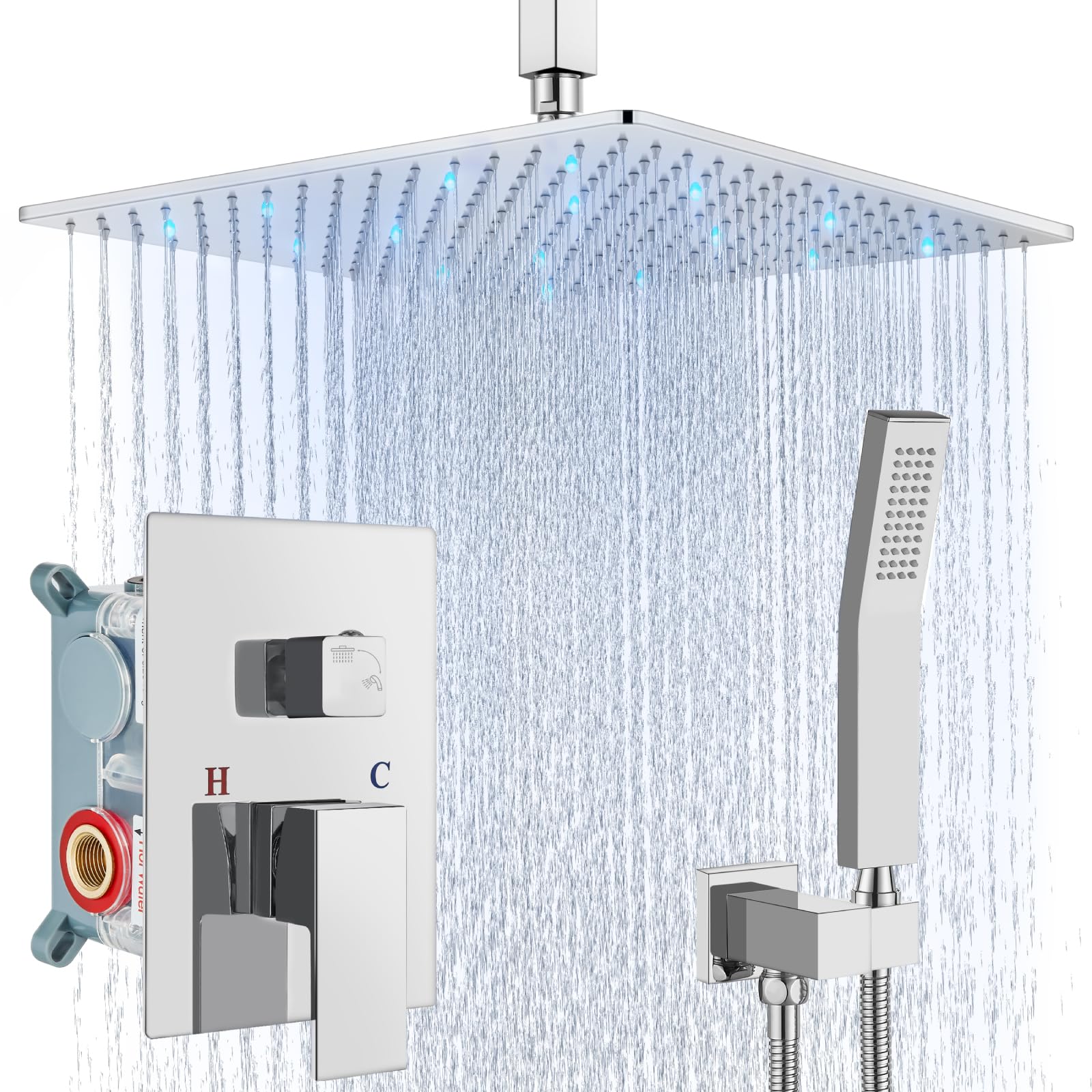 - Aolemi shower faucet has pack of 1 hardware including all installation accessories which is suitable for homeowners, renters, pet owners farmhouse owners and DIY installers tackling bathroom renovations or upgrades. It delivers a modern shower look and is simple enough for self-installation. This shower system set contains at least 50% recycled material. Ultra-thin showerhead design features micro-nozzle technology that compresses water flow through precision-engineered openings.Silicone nozzles of shower head allow easy mineral deposit removal with finger wipes. This shower valve kit has 2 functions, ceiling mounted shower head offeres straight down water that feel natural rain fall and handeheld spray can also do pet washing. We also have various color choice: matte black, brushed nickel, polish chrome, oil rubbed bronze and brushed gold can be suitable for different bathroom style. 8 inch, 10 inch, 12 inch and 16 inch shower head can meet different water flow needs.