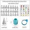 - 【24 Numbered Tips & Pattern Chart】: On the Pattern Chart you can see the result of the various piping tips. This tool makes it very easy to select the perfect nozzle for your cake decorations.Icing pattern with Closed Star, Open Star, French, Rose, Round, Plain, Leaf, Petal.Each of the tips creates a different design.
