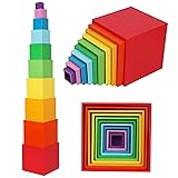 Solid, strong and multifunctional nesting and sorting cube in pure wood with beautiful rainbow colours. It is specially designed for Montessori teaching materials Stacking and nesting are fun. 10 boxes with biggest cup size 15X15X 15 CM (5.9X5.9X5.9 Inches) and 3.3X3.3X3.3 CM (1.3X1.3X1.3 Inches ) the smallest cubes. You can stack the cups up to make a 115 cm tall tower and nest them inside each other at 15.5 centimetres in the colourful box for easy storage It is great fun for stacking and nesting and at same time learning sizes, weight, counting or drawing your own picture on the boxes. A creative and imaginative child may use them as drums and useful containers Suitable age 2 years plus. It is always advisable that an adult to supervise and enjoy the interaction of children with this toy. The stacking toy cube set is great fun toy with lots of educational values. It is a great early learning toy and ideal for babies’ early education and development and can be used as Montessori materials Safe and Environmentally Friendly: Toy safety and children's happiness are our top priorities. We make our wooden toys with pure love and care for our children and the environment. Our wooden toys are made of sustainable wood with environmentally friendly and non-toxic paints. It conforms to EN71 and CPSA Standard and is tested and is certified by International Accredited Labs. We are committed to customers' total satisfaction.