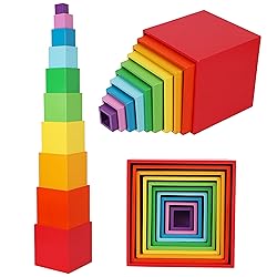 - Colourful sturdy rainbox colour stacking cubes. These ten wooden stacking boxes are made from high quality specially designed for Montessori learning. You can stack the cups up to make a 115 cm tall tower and nest them inside each other at 15.5 centimetres for easy storage. It is great fun for stacking and nesting and at the same time learning colours, sizes, weight and improve hand and eye coordination small motor skills. "Toys of Wood Oxford" or "TOWO" is known for its fine quality, design led, traditional, fun and educational wooden toys. Toys include wooden puzzles, sorting, stacking s, pull-along, Montessori learning, matching, building and construction toys, family games and wooden brain teaser puzzles etc. are exclusively on Amazon. Wooden toys made with pure love and care for our children and the environment. All of the products meet the criteria set by the EC Toy Safety Directive, ASTM F963 and CPSIA Standards, tested and certified by International Accredited Labs. We pride ourselves on providing best and safe wooden toys and first class customer services. We hope our products will bring lots of fun and enjoyment to your children and family.