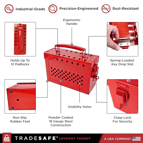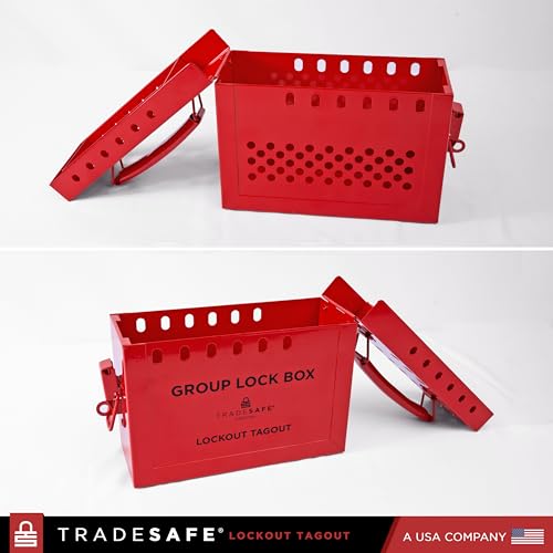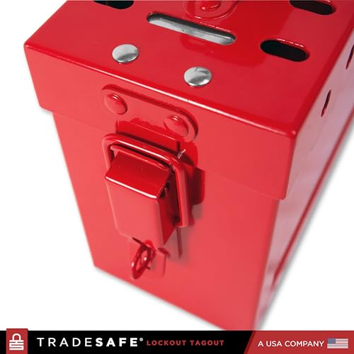TRADESAFE Lockout Tagout Group Lock Box - Premium LOTO Group Box, 18 Gauge Steel Lockout Box, Red Lock Box for OSHA Compliant Group LOTO Procedures