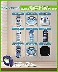 - Package Quantity:3-pack LT label refills 91330 (10697).Type:.Compatible label tape Replacement for DYMO for LetraTag Label tape.Model:91330 (10697 or S0721510).Width:1/2 inch (12mm).Length:4 Meter (4m).Color:Black on White.Material:Paper.These compatible for DYMO Letratag refills 91330 are Compatible with DYMO.Compatible with DYMO for LetraTag label maker:LT-100H Plus, LT-110T, LT-100H, LT-100T, QX50, 2000, XR, LT-100T Plus label makers.Features:.1.Split backing for easy-peel and fast application.2.Easy to install and use.3.Print clear and durable labels.4.Non-laminated surface (Matte surface).5.As a continuous tape, it can be cut into labels of any length.6.Remove the labels without leaving any adhesive residue.Application:These compatible with DYMO for Letratag refills 91330 paper label tapes are ideal for indoor application.These replacement for DYMO for letratag label tapes 91330 (10697) are suitable for smooth,flat and dry surfaces, including plastic, paper, metal and glass.