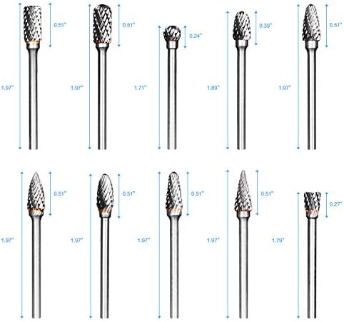 Juego de brocas rotativas, 10 piezas Juego de brocas de carburo de tungsteno de doble punta de corte para afilador de brocas rotativa Herramienta para grabar, trabajar la madera, tallar, pulir y perforar, 1/8" taladro de vástago 1/4” tamaño de cabeza
