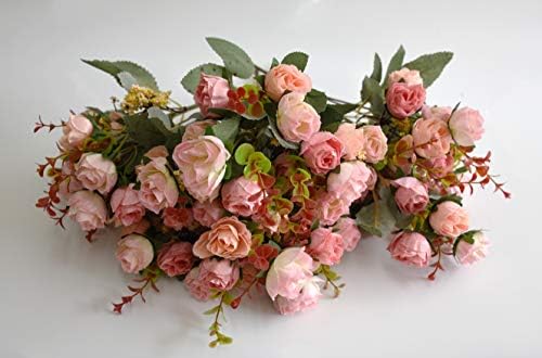 7 Branch 21 Heads Artificial Flowers Mini Rose Bouquet Silk Rose Bouquet Wedding Home Office Floral Decor Pack of 4 (Pink)