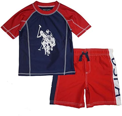U.S. Polo Assn. Boys' 2-Piece Swimsuit Trunk and Rashguard Red