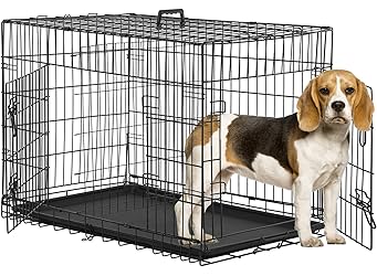 SAFE & SECURE DOG CAGE: This durable dog cage features reinforced steel pipes, rounded corners, and dual latches on both front & side doors, to keep your pet secure during dog training or quiet time. DURABLE CONSTRUCTION FOR EVERYDAY USE: Made with rust-resistant wire and reinforced edges, this dog cage offers long-term durability while remaining lightweight enough to carry on the move DUAL-DOOR DESIGN FOR EASY ACCESS: Front and side doors with secure dual latches make it easy to load, unload, and interact with your pet while ensuring safety inside the dog kennel. TRAVEL-READY & COLLAPSIBLE: Whether used as dog crate furniture at home or as a pet carrier for travel, the collapsible dog crate transitions easily for indoor use, camping trips, or vet visit LEAKPROOF & EASY TO CLEAN: Equipped with a durable, removable ABS tray that contains messes, resists stains and odors, and makes cleaning your indoor dog kennel quick and stress-free.