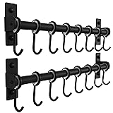 Dseap Kitchen Hooks for Hanging Utensils, Hanging Pot Rack, Kitchen Utensil Hanger Rail with 8 Hooks for Pots Pans, Spoons, Mugs, Wall Mounted, Stainless Steel, Black, Pack of 2