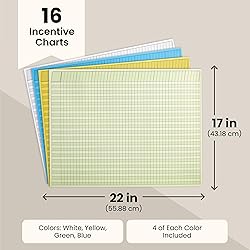 - Bright Creations presents the Incentive Charts for Classroom, an essential educational tool designed to instill responsibility and track progress among children. This set includes 16 multicolor horizontal charts, each measuring 22 x 17 inches, providing ample space for personalization and adaptability to individual educational needs. These charts are ideal for the upcoming months as they aid in maintaining focus and organization for children adapting to new routines. In a classroom setting, these incentive charts function as a behavior chart for kids, helping educators track attendance and manage classroom incentives. At home, they serve as a kids chore chart, encouraging accountability and goal-setting through a visual reward system. This versatility makes them a valuable asset for managing household responsibilities and fostering good behavior. Constructed from durable 120gsm offset paper, these charts are designed for frequent use, ensuring long-lasting reliability. The vibrant multicolor set, featuring shades like green, white, and blue, adds a lively touch to any environment, be it a classroom or home. Parents and educators alike find these charts invaluable for supporting behavior management and academic achievement. Moreover, these incentive charts can be used as a sticker reward chart for kids, employing reward stickers to visually reinforce positive behavior. The spacious format allows for comprehensive progress monitoring, making them suitable for a wide range of learning activities and classroom needs. The charts' adaptability makes them perfect not only as a classroom incentive chart but also as a reward system for kids, supporting various educational and developmental goals.