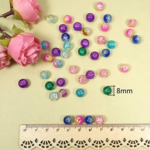 TOAOB 200pcs 8mm Glass Beads for Jewelry Making Crackle Glass Lampwork Beads Round Loose Spacer Bead Supplies for DIY Crafts Bracelets Necklaces