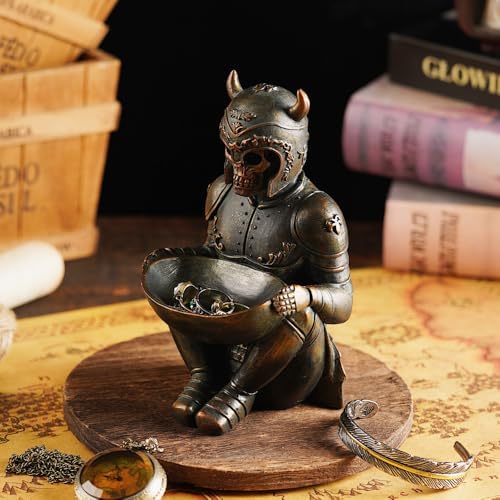 Viking Skull Jewelry Ring Tray,Medieval Viking Skeleton Warrior Jewelry Ring Holder Stand,Trinket Key Holder Desk Accessories Organizer for Home Office Desk Supplies.