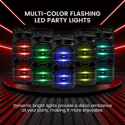 Pyle PPHP2835B - Sistema de altavoces PA portátil con Bluetooth recargable de 600 W para exteriores, sistema de megafonía portátil con subwoofer doble de 8», tweeter de 1», entrada de micrófono, luces de fiesta, USB, radio, mando a distancia