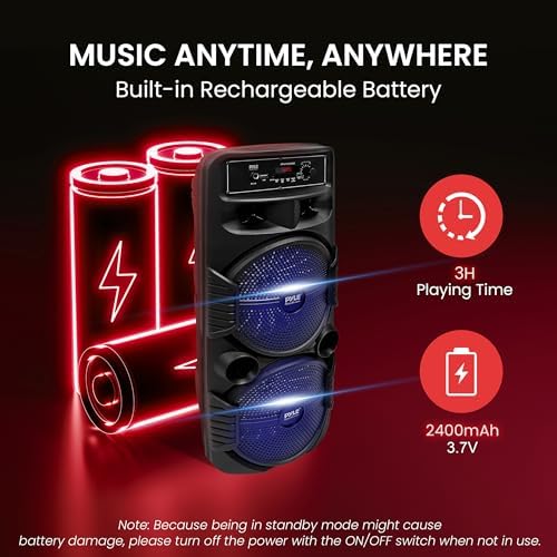 - BATERÍA RECARGABLE: Este altavoz Pyle PA es ideal para karaoke, actuaciones en el escenario y control de multitudes. Es totalmente portátil, gracias a su batería recargable integrada con luces indicadoras de nivel y asa de transporte extensible para que puedas llevarla a cualquier parte