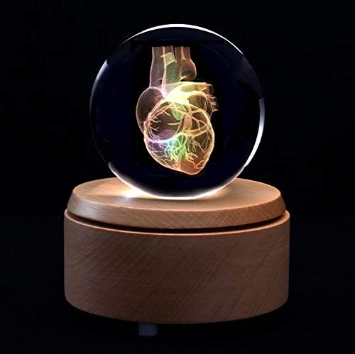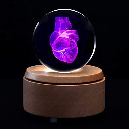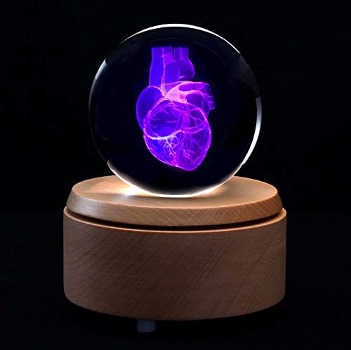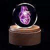 XINDAM 3D Human Heart Anatomical Model Paperweight(Laser Etched) in Crystal Glass Ball Science Gift (Included LED Base)