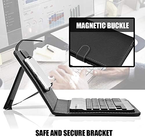 - 【Premium Protection】The Wireless Keyboard Case is made of soft PU leather protective and soft microfiber-lined interior which offers unmatched protection to the cell phone and keyboard during use, on the go or in case of accidental knocks or falls. Plastic keyboard is dustproof, scratch-resistant, wear-resistant, high-quality, long service life. With a magnetic keyboard cover that gently closes to turn it into a classic briefcase.