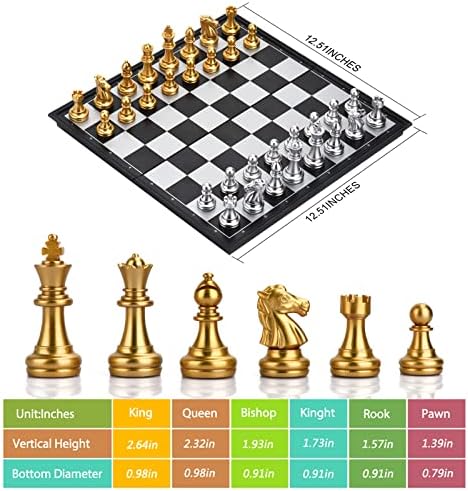 - 【CONJUNTO PORTÁTIL 3 EN 1】Juega ajedrez, damas y backgammon dondequiera que vayas con este práctico conjunto de juegos múltiples; Tamaño abierto del tablero es de 12.51*12.51*0.79 Pulgadas, mientras que el tamaño plegado es de 12.51*6.25*1.58 Pulgadas. Este tablero de ajedrez de tamaño perfecto es lo suficientemente pequeño para viajar, pero también lo suficientemente grande para jugar cómodamente.
