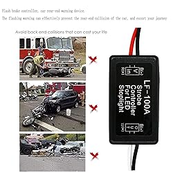 【2PCS LED Strobe Controller】Improve traffic safety warning, to avoid rear-end accident. When driving clogged at night, continued brakes produce visual fatigue,This flasher can solve this shortcoming very well. 【Flashing pattern】When Braking, It will Fast Blinking 4 Times, Then Slow Blinking 4 Times, When Flashing is Completed, It will Stay in the Original Steady Light 【Controller Specification】Working Voltage: DC 12V;Max Current:3A;Max Power Out: 35W 【Waterproof Design】Mini size and Water-poof design; Compatible with all types of brake lights including LED clusters, such as cars, motorcycles, electric bicycles and other LED lights 【Easy to Install】Input: red wire for power positive, black wire for power negative; Output: white wire for LED positive, black wire for LED negative;
