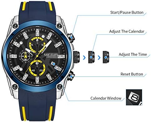 MEGIR Reloj analógico deportivo cronógrafo de cuarzo luminoso para hombre con correa de silicona moderna