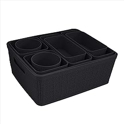 Simplify 10 Piece Organizing Set | Multiple Size Bins | Multipurpose | Office | Desk | Dorm | Bathroom | Storage Basket | Small Items | Accessories | Black