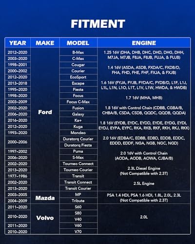 - AMPLIA COMPATIBILIDAD: Nuestras herramientas son compatibles con S60, S80, V40, V60, V70 Volvo y Ford: B-MAX, C-MAX, Cougar, Courier, EcoSport, Escape, Fiesta, Focus, Focus C-Max, Fusion, Galaxy, Ka+, Kuga, Mondeo, Puma, S-MAX, Tourneo y Transit