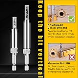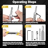 - 1. Suitable for hinge, handle, drawer slide, woodworking, etc., especially for punching on wood door and window hinge.2. The automatic positioning center improves positioning accuracy and efficiency. Wood chips will be automatically discharged from the holes on both sides of the top of the bit, which will not block the bit. It is a must for professionals and DIY personnel.3. Hinge drills come in 8 different sizes: 5/64', 7/64'', 9/64'', 9/64’’, 11/64'', 13/64'', 5mm, 1/4". With a hex key and 8 replacement drill bits to meet your needs.