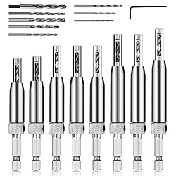 Durable Drill Bits: The 16pcs self-centering drill bit made of high-speed steel drill bit & quenching treatment shell designed. Adjustable drill depth, high hardness, rustproof, durable and superior drilling performance. The best choice to send Senrob counter drill bit as a gift for your father, brother or husband Wide Applications: Senrob counter drill bit is a standard bit with all size to meet your need, could make a nice touch for wood projects or work in most quick disconnect adapters like a wood window or door tapping, etc Accurate Tool: Adjustable design allows you to replace drill easily. The automatic positioning center improves positioning accuracy and efficiency. Wood chips will be automatically discharged from the holes on both sides of the top of the bit, which will not block the bit. It is a must for professionals and DIY personnel.holes, They make alignment of holes so much easier and you can get center every time EXCELLENT DESIGN: The center drill set features self-centering to reduce bit walking increases precision and efficiency when drilling. Double-sided hole design - fast & automatic discharge Sawdust from the hole on both sides, without a drill, blocked All Size You Need: Hinge drills come in 8 different sizes: 5/64', 7/64'', 9/64'', 9/64’’, 11/64'', 13/64'', 5mm, 1/4", with a hex key to meet your needs.