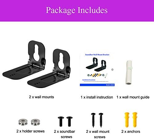 Wall Mount Bracket for Samsung Soundbar Q-series A-series B-series S-series Soundbar Wall Mount Bracket for Samsung Soundbar N-series M-series K-series H-series Soundbar Wall Mount Bracket for Samsung Soundbar J-series F-series R-series T-series Soundbar: for Samsung Sound bar Models: A-series Soundbar: HW-A450 HW-A550 HW-A650 B-series Soundbar: HW-B450 HW-B550 S-series Soundbar: HW-S40T HW-S50A HW-S60A HW-S61A HW-S800B HW-S801B Q-series Soundbar: HW-Q600A HW-Q600B HW-Q60T HW-Q65T HW-Q60R HW-Q700A HW-Q700B HW-Q70R HW-Q800A HW-Q800B HW-Q800T HW-Q80R HW-Q900A HW-Q900T HW-Q950A HW-Q950T HW-Q90R HW-Q990BN-series Soundbar: HW-N400 HW-H450 HWH450 HW-H751 HWH751M-series Soundbar: HW-MS550 HW-MS560 HW-MS57C HW-MS650 HW-MS6500 HW-MS6510 HW-MS6511 HW-MS660 HW-MS661 HW-MS750 HW-MS751 HW-MS760 HW-MS760 HW-MS761 K-series Soundbar: HW-KM45C HW-K650 HW-K850 HW-K850/ZA HW-K950 HW-K950/ZAH-series Soundbar: HWH450 HW-H750 HWH750 HWH751J-series Soundbar: HW-J250 HWJ250 HW-J355 HWJ355 HW-J450 HWJ450 HW-J550 HWJ550F-series Soundbar: HW-F550R-series Soundbar: HW-R450T-series Soundbar: HW-T400 HW-T650 HW-T550Detail: Product name: for Samsung Soundbar Wall Mount Kit Design Feature: Well made, sturdy, durable, save place Protection plan: 180 daysPackage Includes: -2 x Wall Mount Bracket -2 x Holder-Screw -2 x Short Screw -2 x Long Screw -2 x Anchor -1x Wall Mount Guide -1x User InstructionPlease Note: 1. This is not covered by their assurance. 2.Any use of the brand name, model or part name for this product is for the sole purpose of demonstrating compatibility.